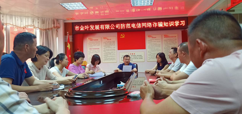 為切實(shí)做好公司全體員工安全防范教育,增強(qiáng)防騙意識(shí),提高識(shí)騙能力,預(yù)防和杜絕電信網(wǎng)絡(luò)詐騙案件的發(fā)生,在第53個(gè)世界電信日,揭陽(yáng)市金葉發(fā)展有限公司在黨員活動(dòng)室舉行防范電信網(wǎng)絡(luò)詐騙知識(shí)學(xué)習(xí)會(huì)。